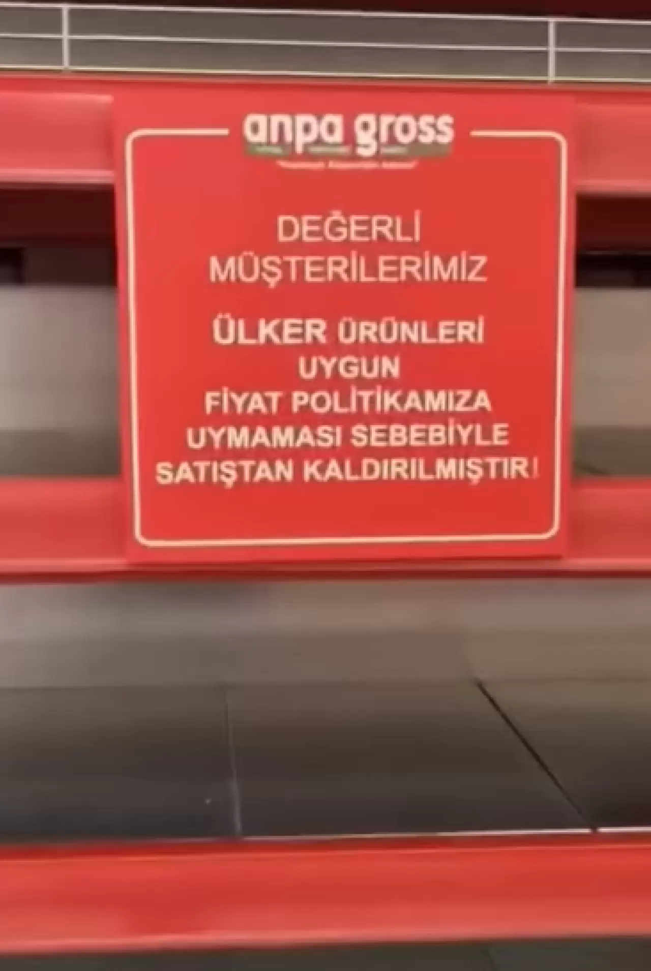 Anpa Gross mağazasında boş rafların üstüne duyuru asmış, "Değerli müşterilerimiz. Ülker ürünleri uygun fiyat politikamıza uymaması sebebiyle satıştan kaldırılmıştır" demişti.
