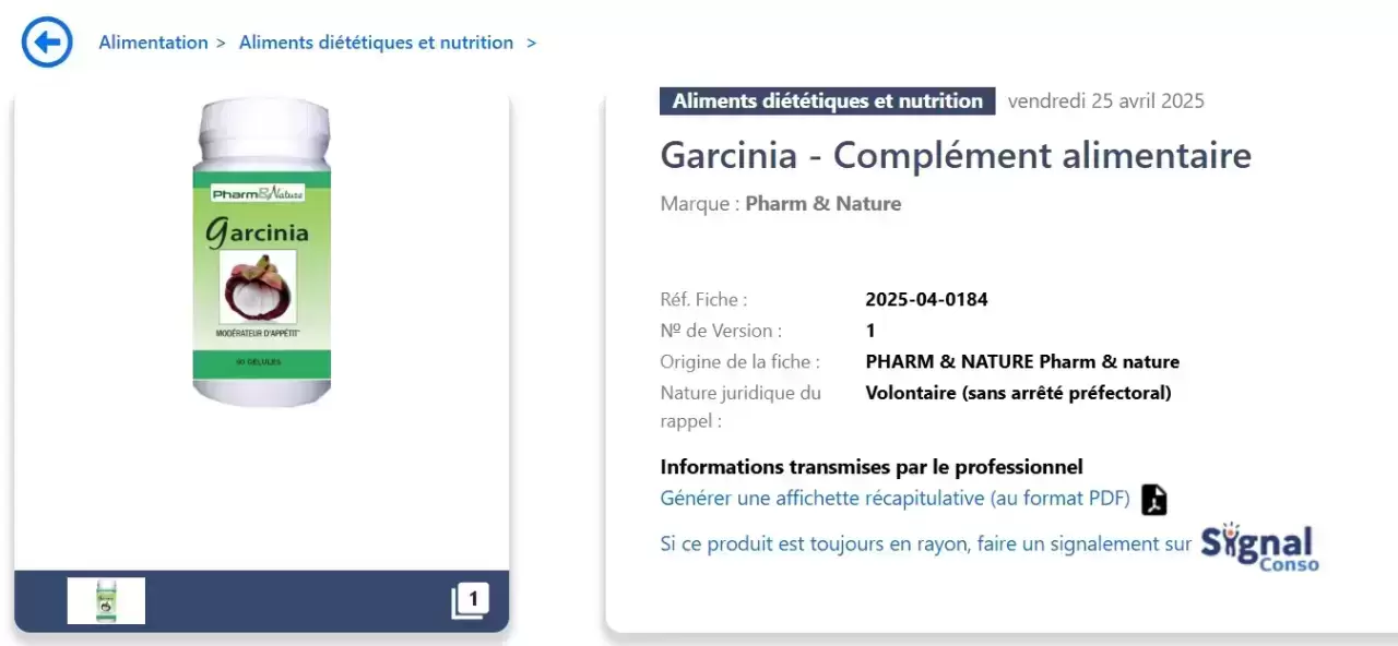 Fransız gıda güvenliği ajansı ANSES, son dönemde arka arkaya Garcinia cambogia içeren gıda takviyeleri için, toplatma kararları yayınlıyor. Fransa'da bu bitkinin gıda takviyelerinde kullanımının yasaklanmasının ardından yapılan piyasa denetimlerinde, tropikal bitki Garcinia cambogia’nın kullanıldığı takviyelere el konulmaya başlandı.