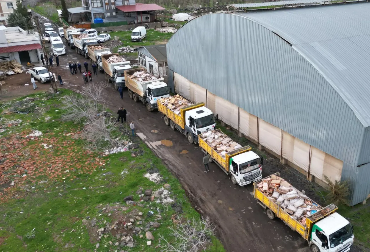 Belediye ekipleri, ele geçirilen ürünleri iş makineleriyle kamyonlara yükledi. Yüklemesi tamamlanan 8 kamyon dolusu bozuk et daha sonra imha edildi.