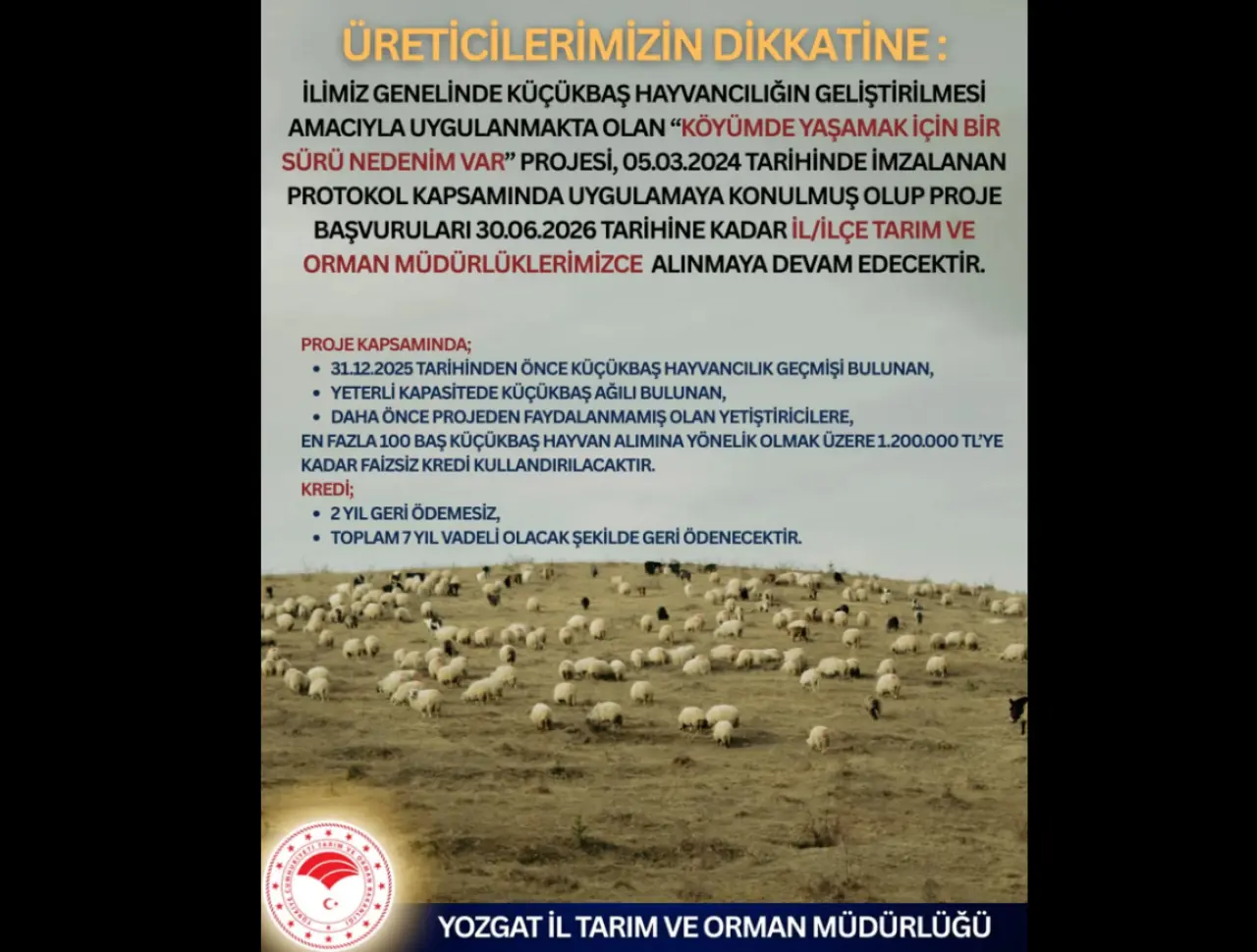 Tarım ve Orman Bakanlığı, kırsalda üretimi canlandırmak ve küçükbaş hayvancılığı güçlendirmek amacıyla “Köyümde Yaşamak İçin Bir Sürü Nedenim Var” projesini 2026’ya kadar uzattı.