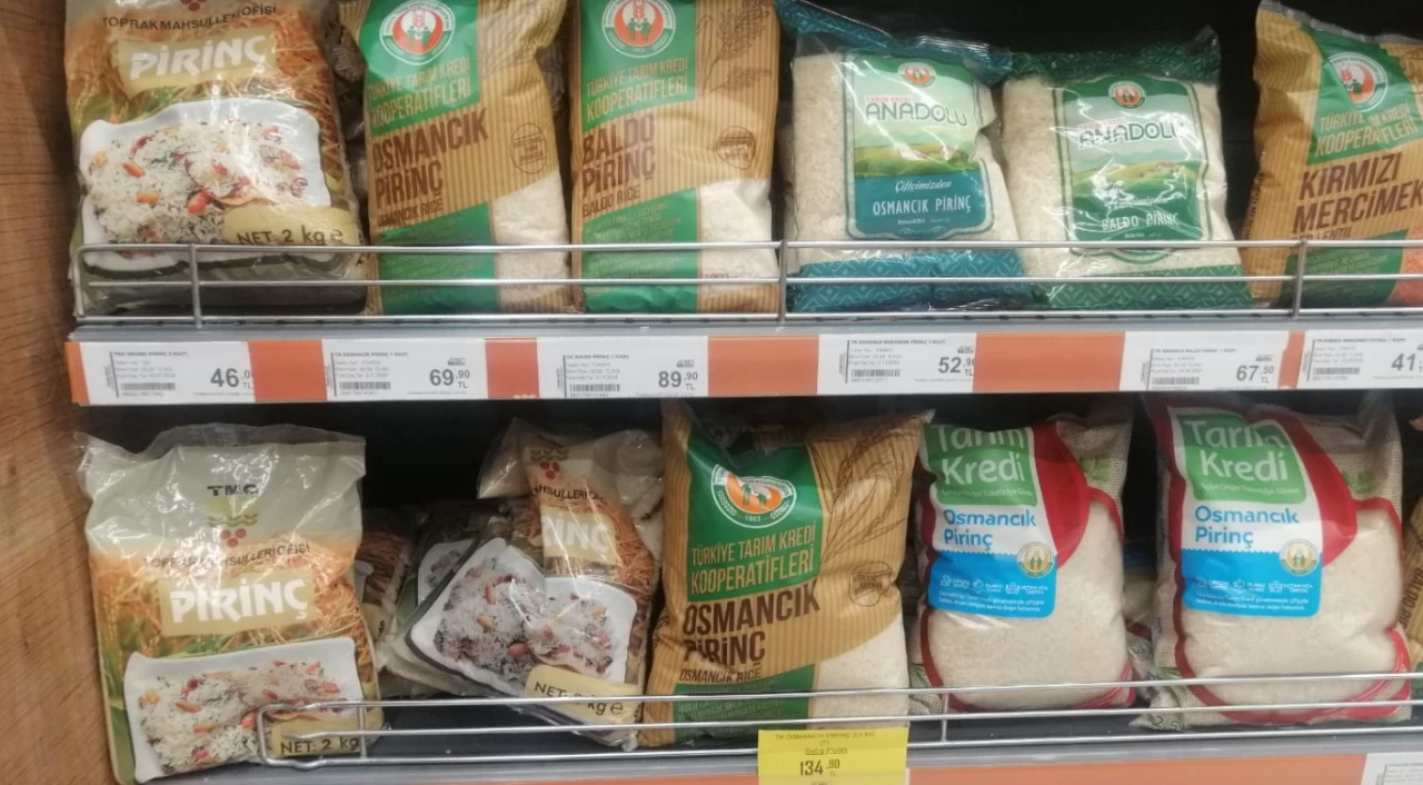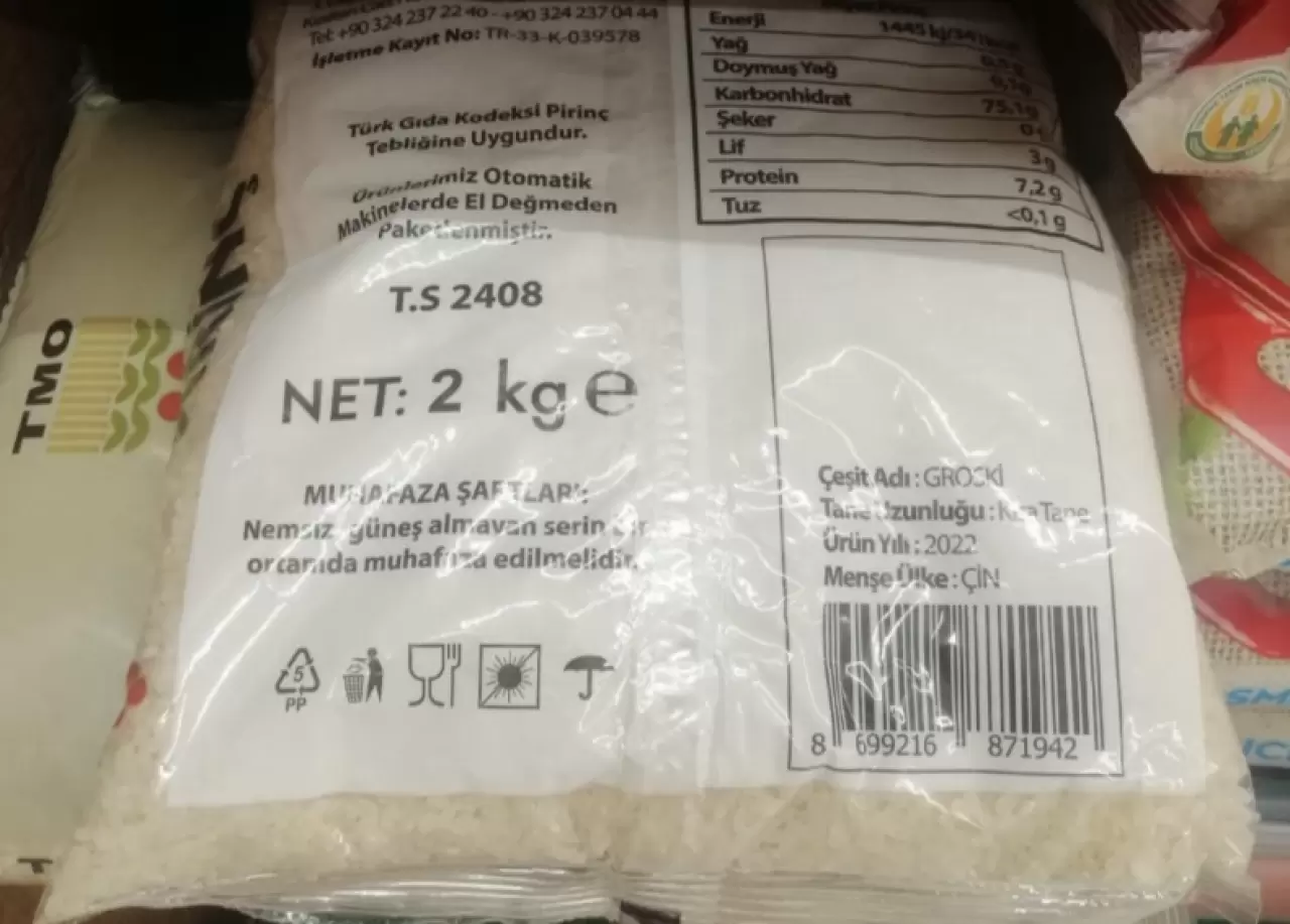 Tarım Kredi Kooperatifleri'ne ait marketlerde en ucuza satılan pirinç, Çin'den ithal edilen kısa taneli Groski pirinci. Türkiye'de üretilen kısa taneli Osmancık pirincinin yarı fiyatından daha da ucuza satılan priincin ürün yılı ise 2022. Yaklaşık 1 yıl önce paketlenerek satışa sunulan pirincin tavsiye edilen tüketim tarihi de, 2025 yılının Aralık ayı. Hasat ediliş tarihinden neredeyse 3 yıl sonra tükteciye ulaştırılan pirinç, Toprak Mahsulleri Ofisi'nin paketiyle satışa sunulmuş.